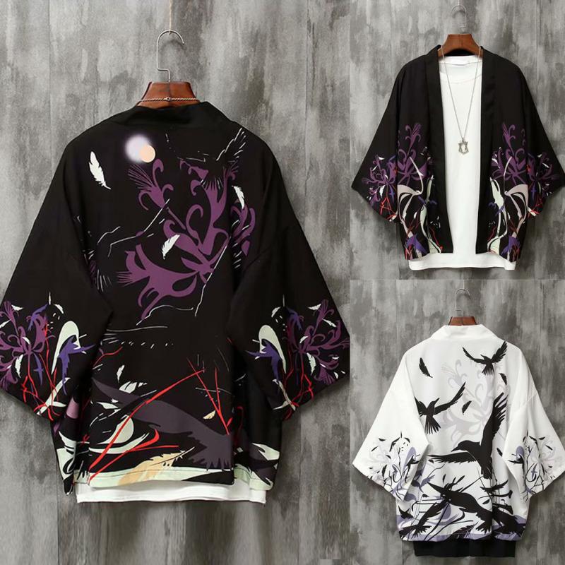Мужской костюм Тан в японском стиле с коротким рукавом и рисунком ласточки, халат с рукавом три четверти, пляжный повседневный костюм
