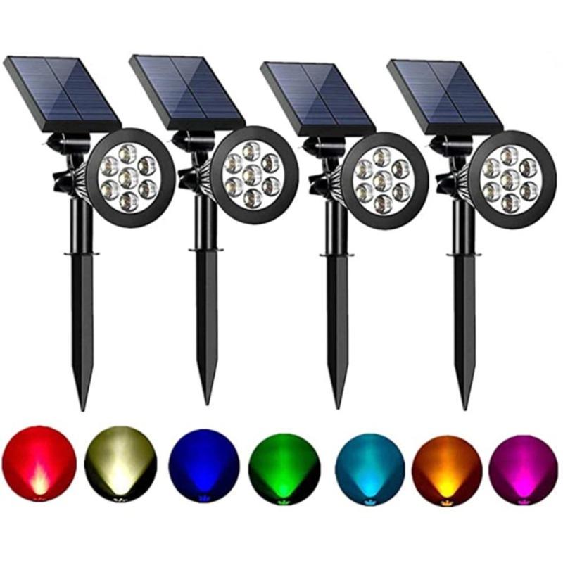 Светодиодный солнечный прожектор 7 цветов, изменяющий 180 градусов, регулируемый уличный садовый пейзаж, декоративный светильник