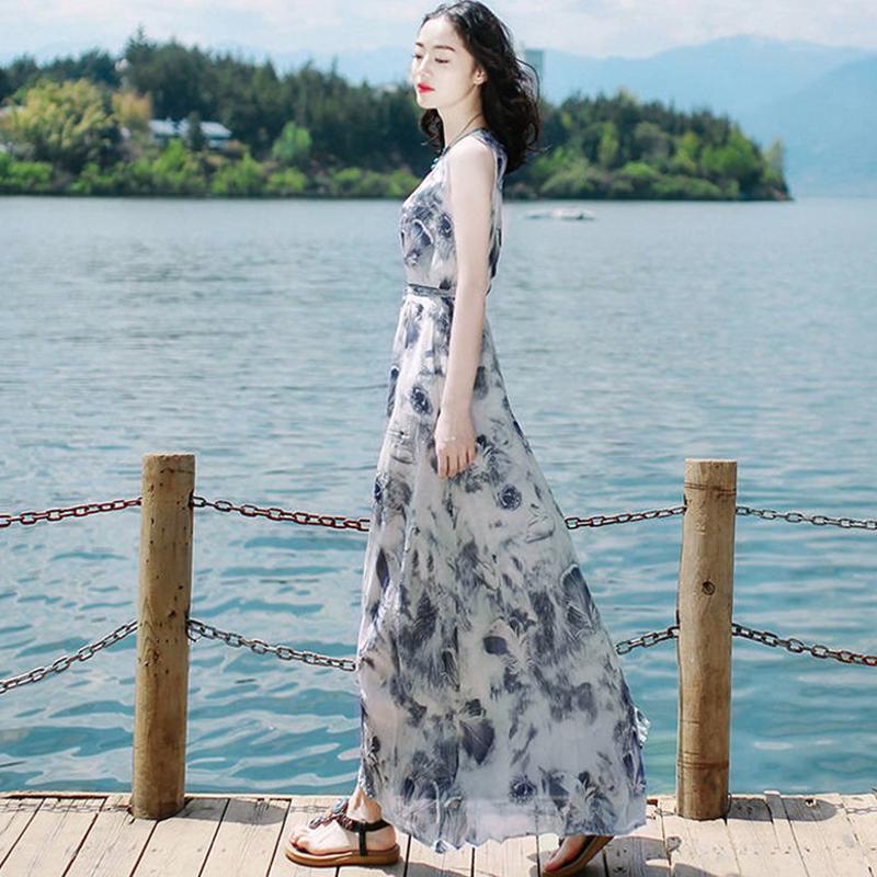 Женское летнее платье без рукавов, богемное длинное пляжное платье для отдыха на море