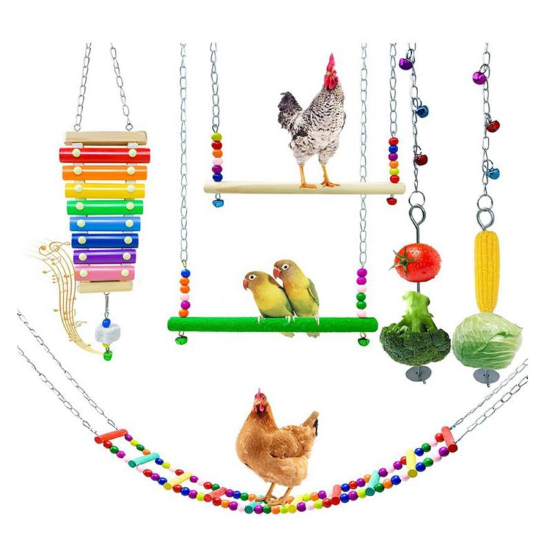 Попугай, натуральные деревянные жевательные игрушки, куриные качели, лестница, овощи, фрукты, подвесная кормушка, игрушки с металлом