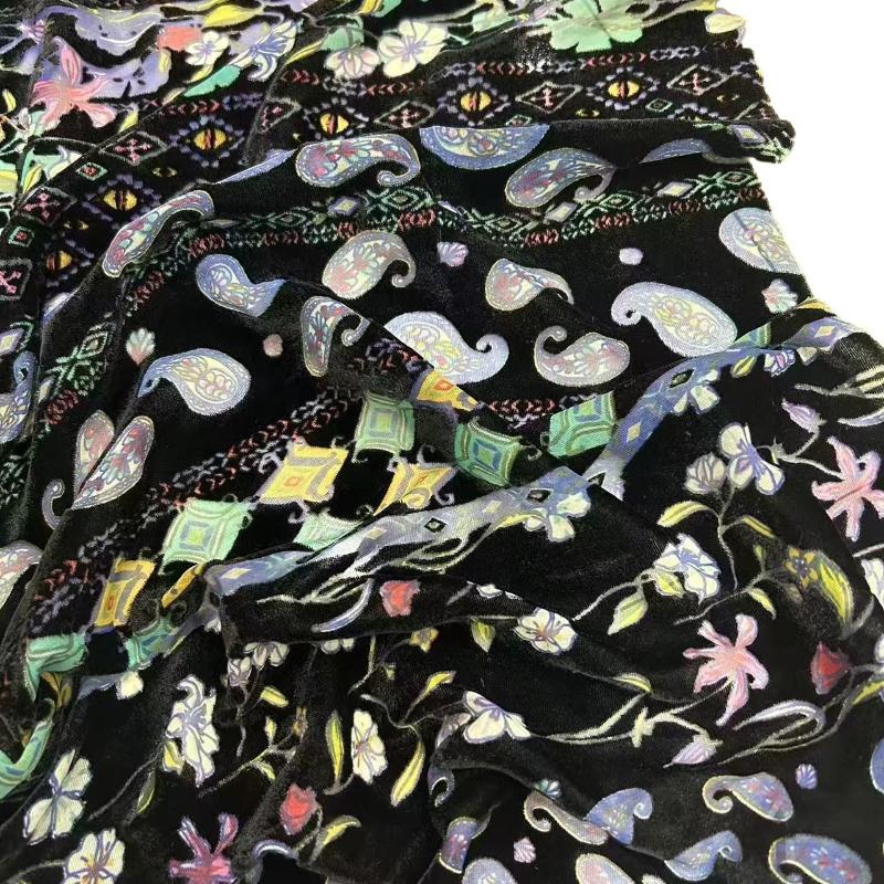 1 метр Ретро Черный Цвет Богемный Стиль Цветочный Узор Бархатная Ткань Парча Жаккардовые Ткани для DIY Шитья Платья Ципао