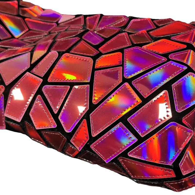 Геометрическая Лазерная Полиэстеровая Бархатная Ткань с Блестками, Ткани с Градиентной Вышивкой, Для Шитья DIY, Одежда для Сценических Костюмов, Красный Цвет