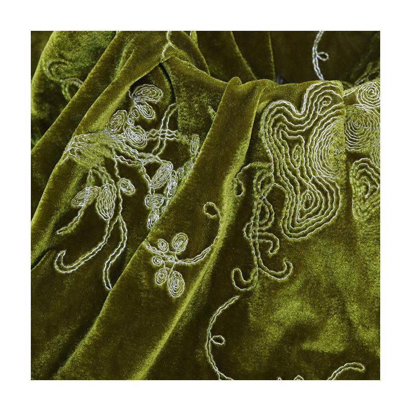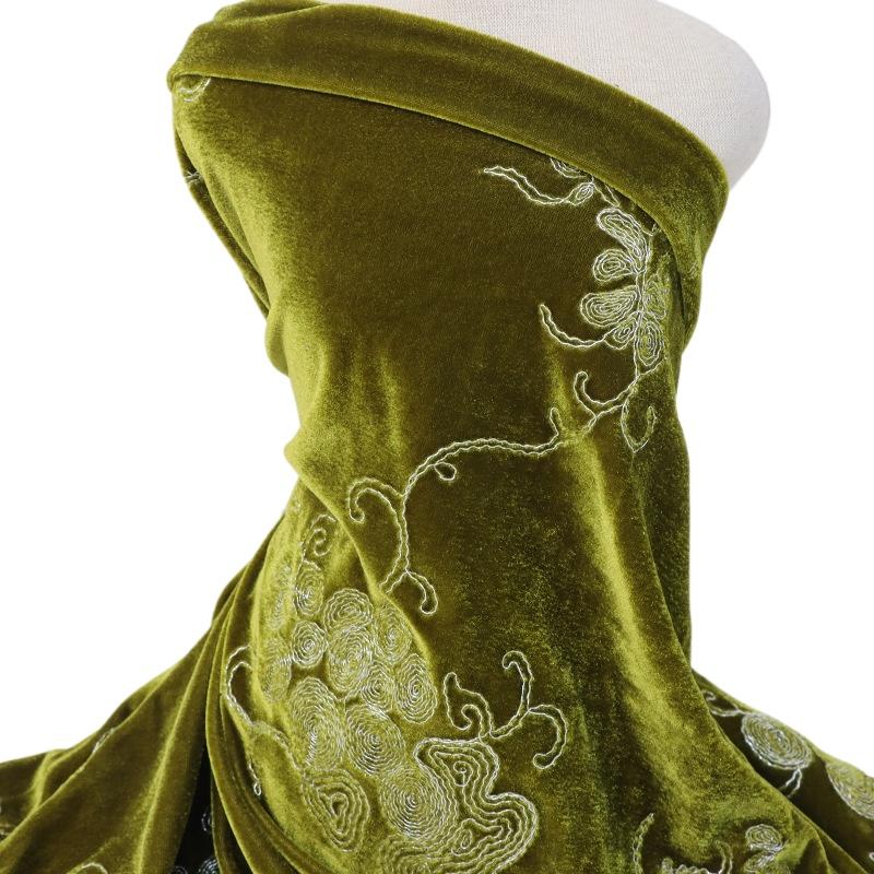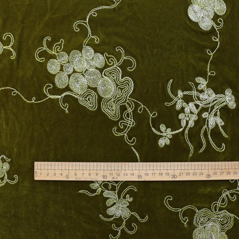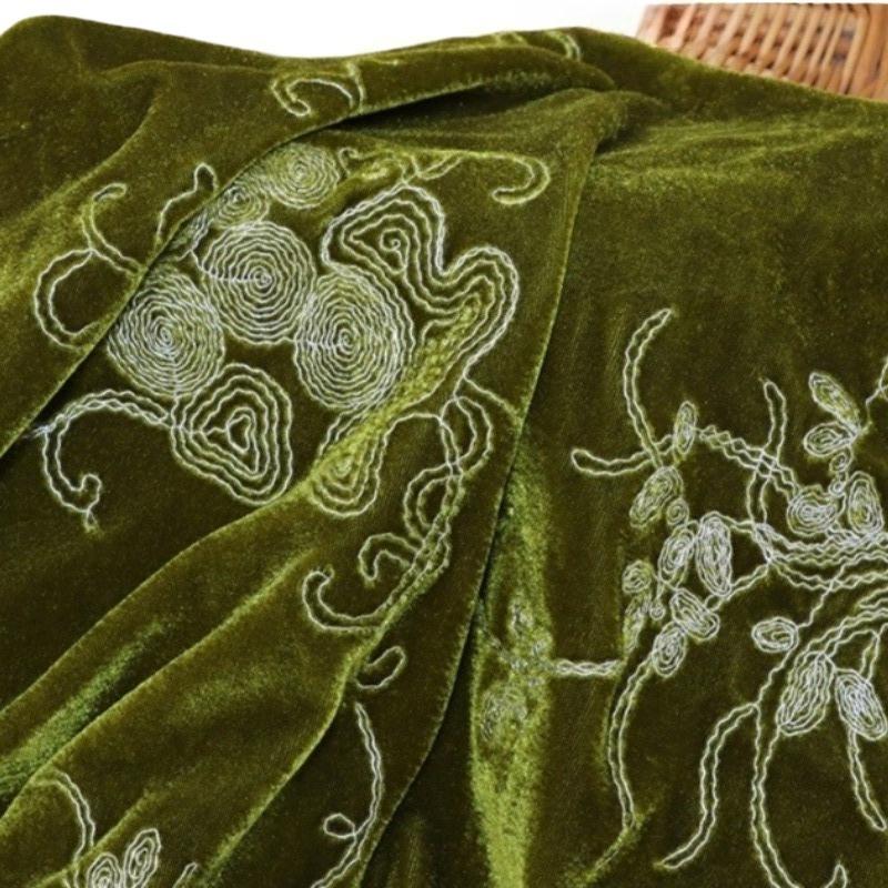 1 метр Ткань бархатная с вышивкой с цветочным узором, зеленого цвета, жаккардовые ткани для одежды ципао, костюмов для выступлений