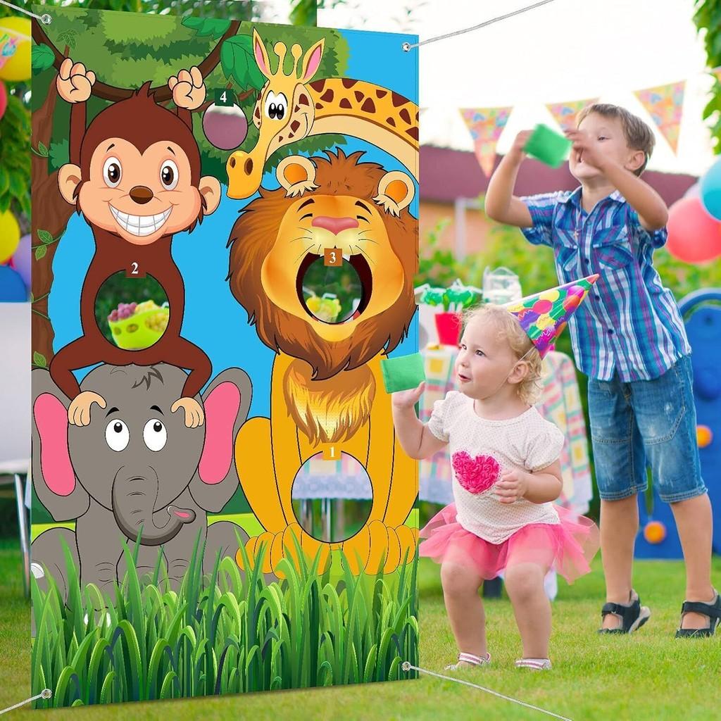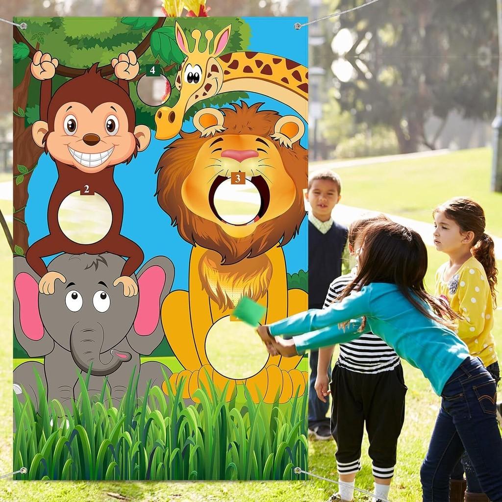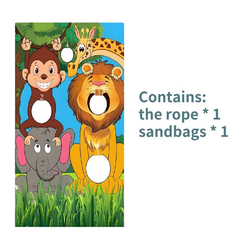 Игра с бросанием мешочков с песком в животных джунглей! 75 на 135 см, украшенный восхитительными графическими изображениями животных джунглей. Изготовленная из прочного полиэстера, эта ткань ярко окрашена и идеально подходит для вечеринок, пикников и семейных посиделок.