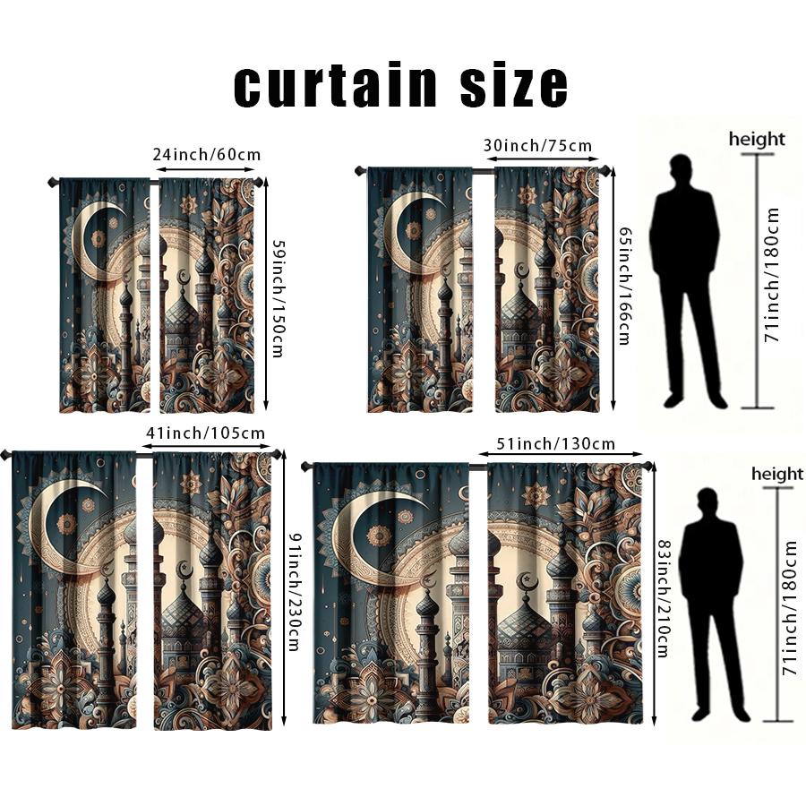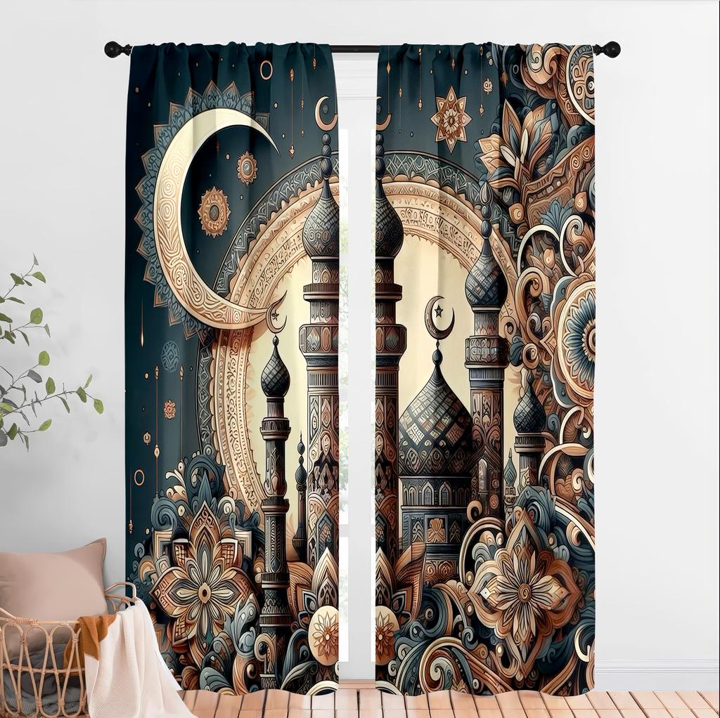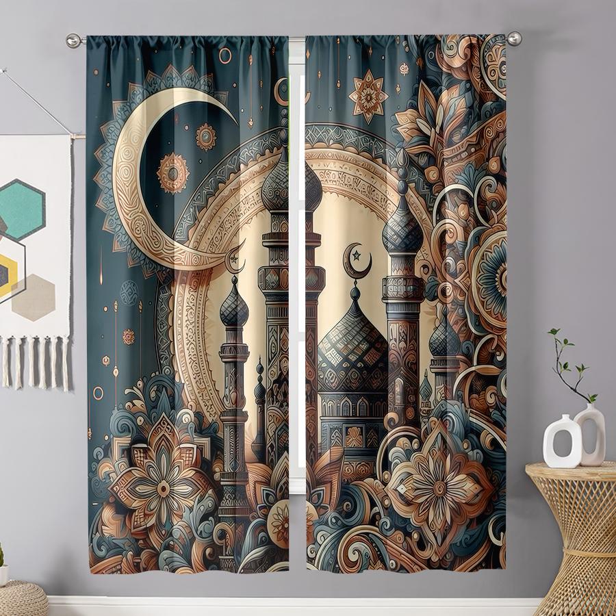 2 шт. Изысканные шторы с мечетью и полумесяцем, Идеально подходят для украшения окон на Рамадан/Ид, Изысканный декор для дома, гостиной, спальни