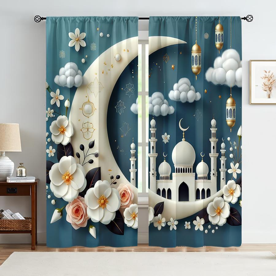 2 шт. Синие Нижние Полумесяц Исламский Элемент Шторы, Романтический Стиль, Гостиная и Спальня, Декорация с Карманчиком для Штанги — купить товар онлайн с бесплатной доставкой по всему миру!