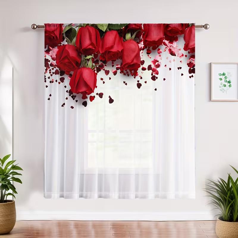 2 шт. Красная роза сердце лепесток прозрачные шторы романтический принт на День святого Валентина светофильтрующие драпировки милый домашний декор для спальни гостиной