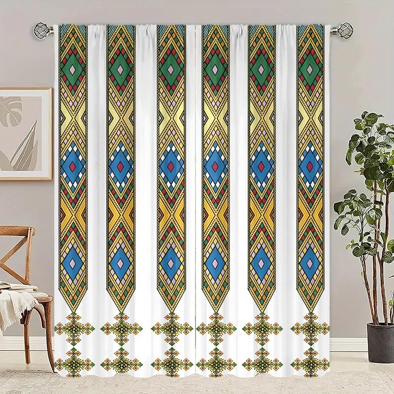 1 set of 2 pieces, purple-colored geometric rhombus patterned Ethiopian-style printed curtains, living room furniture decoration