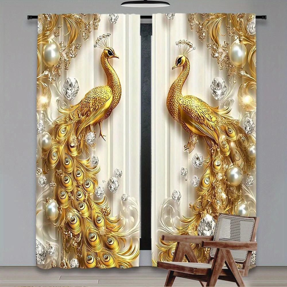 2 штуки штор с принтом в виде золотых павлинов, шторы с кулиской, для спальни и гостиной, домашнее украшение, украшение комнаты