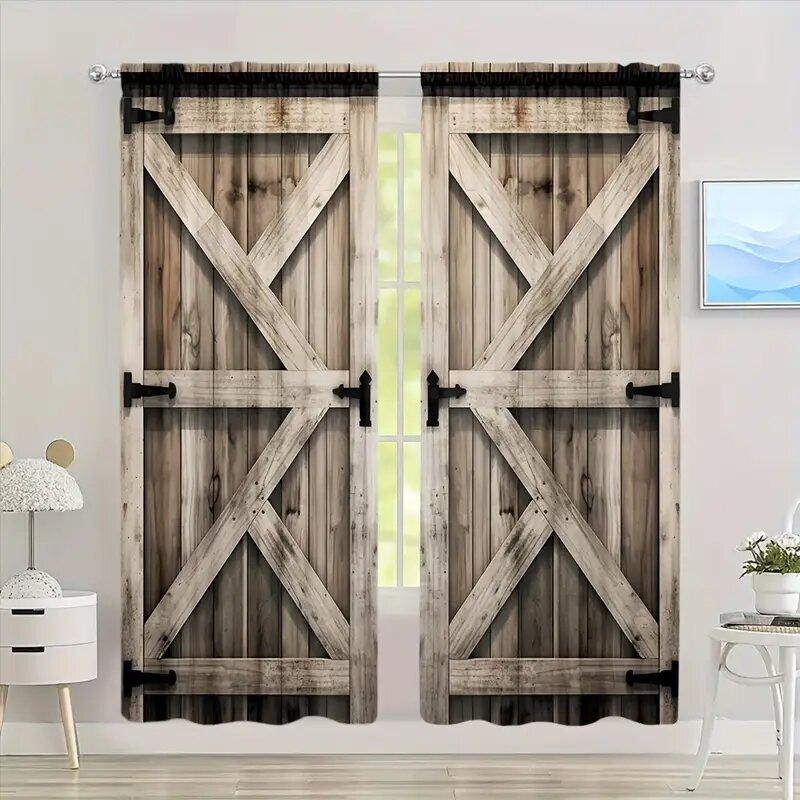 2 шт. штор с принтом под светлое дерево, шторы с кулиской 42*84, украшение дома, украшение комнаты