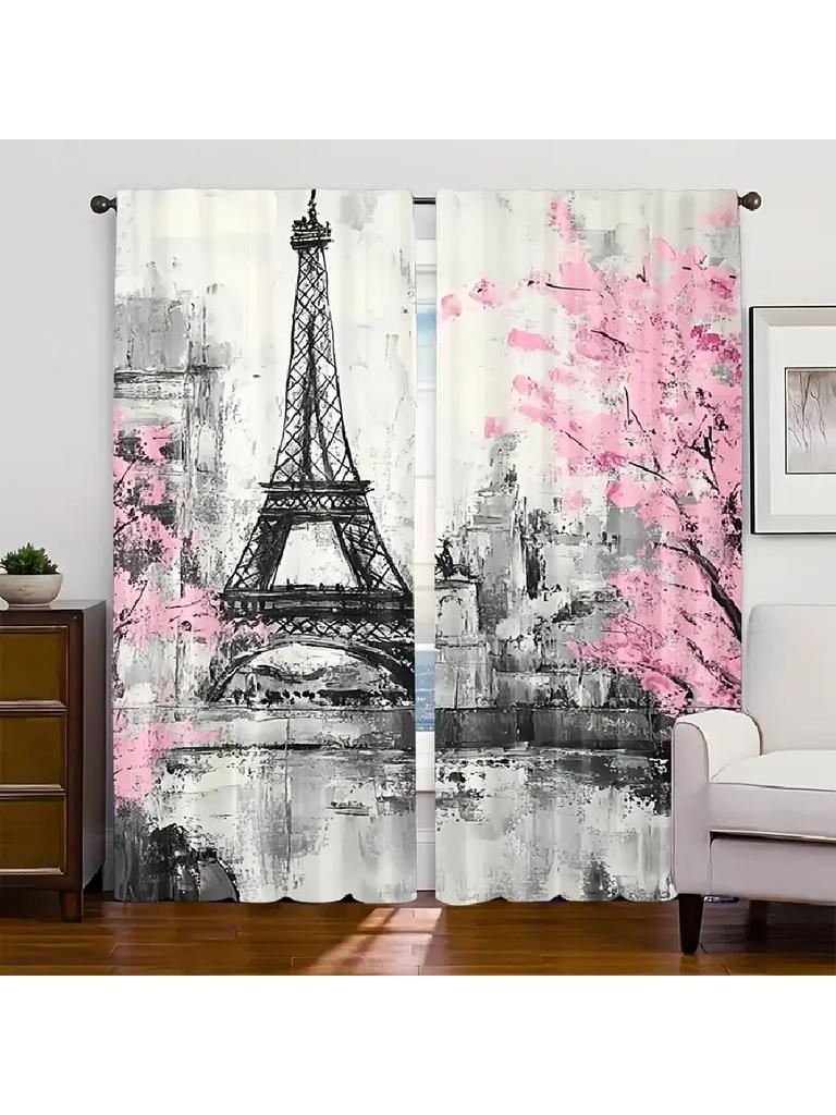 2 шт. Художественные шторы с принтом Эйфелевой башни, Париж, Дизайн для светофильтрации, Качественный материал, Идеально для дома в дорожной тематике