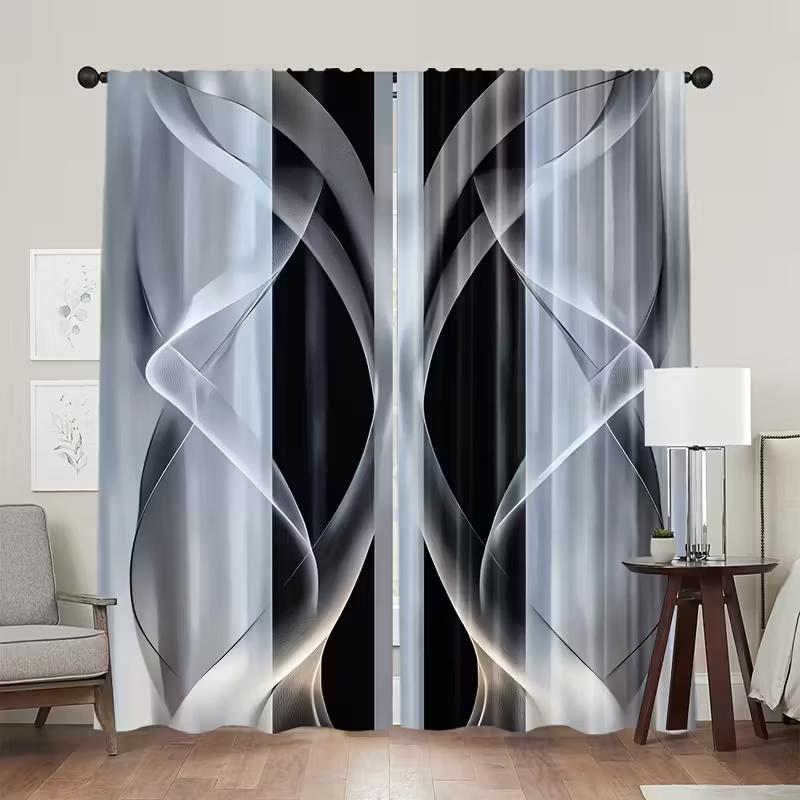 2 шт. Занавески с черно-белым изогнутым принтом, подходят для декора спальни, гостиной, кухни, декора дома, декора окна