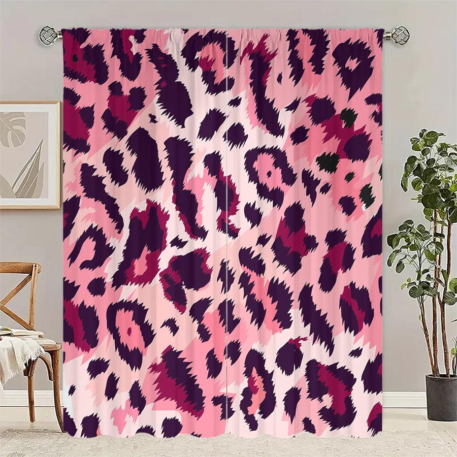 Шторы с розовым леопардовым принтом, шторы с кулиской, рождественские украшения, повседневные домашние украшения, украшения для комнаты