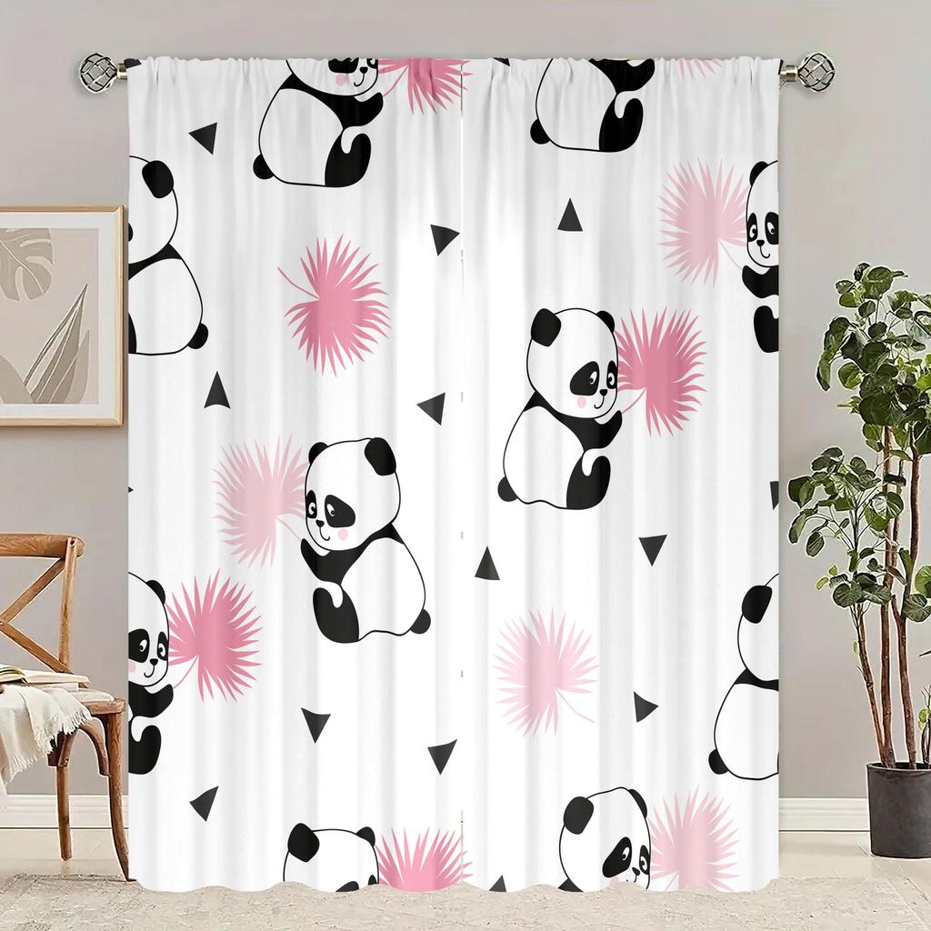 2 шт. - Шторы с принтом «Панда» - материал - полиэстер - подходят для спален, гостиных и кабинетов в качестве занавесок для обеспечения конфиденциальности.