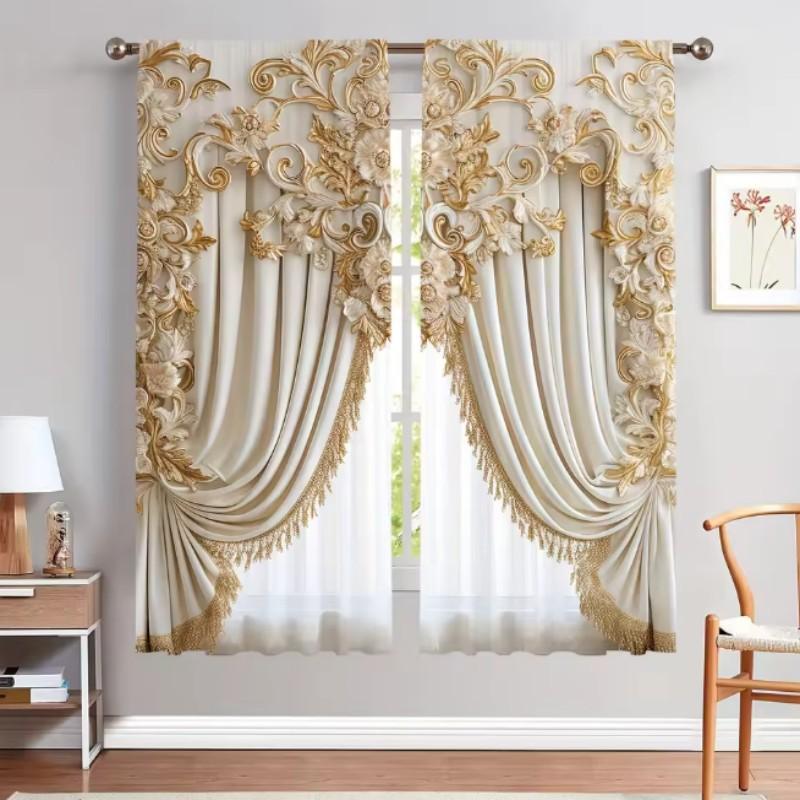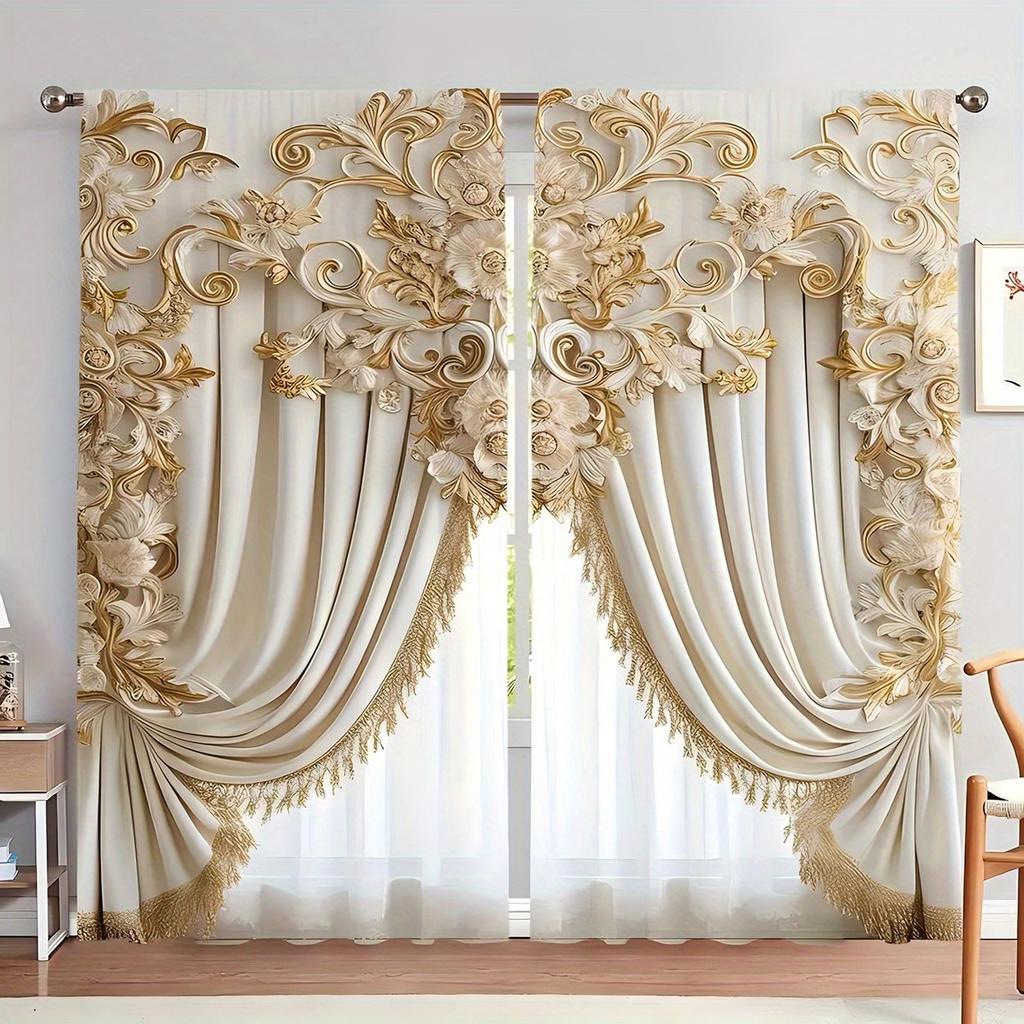 2 шт. роскошные золотые классические шторы, дизайн из полиэстера с кулиской, спальня, домашний декор