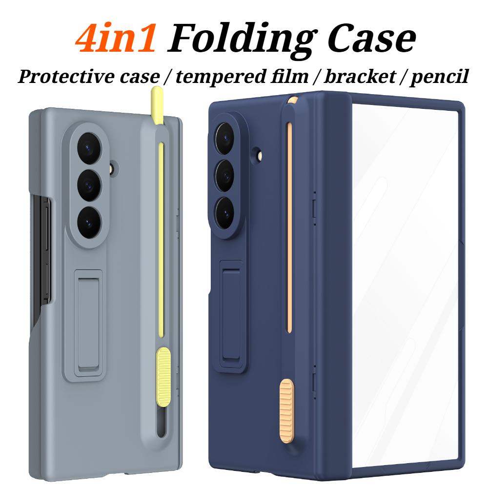 Магнитный чехол-книжка для телефона Samsung Galaxy Z Fold 7 3 4 5 6 с защитой экрана из стекла, выдвижным слотом для хранения ручки, держателем, крышкой для Galaxy Z Trifold
