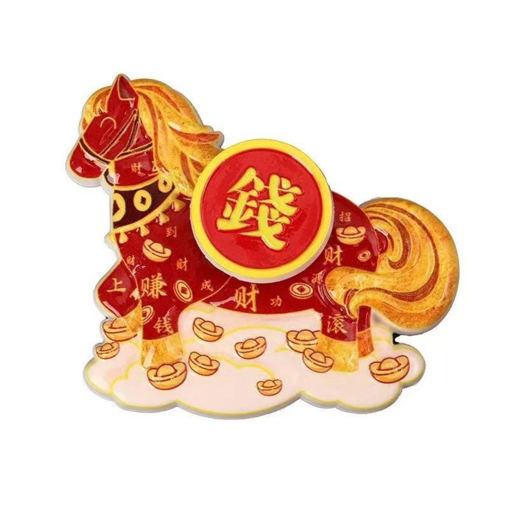 Бог Богатства Новогодний Магнитный Стикер Мультяшная Лошадь Год Лошади Магниты на Холодильник Китайский Новый Год