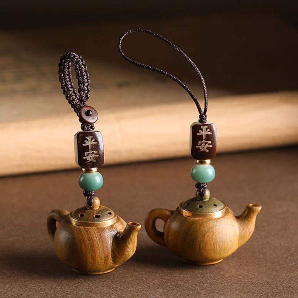 Waterproof Carved Teapot Pendant Ornament Green Sandalwood Phone Chain Couple