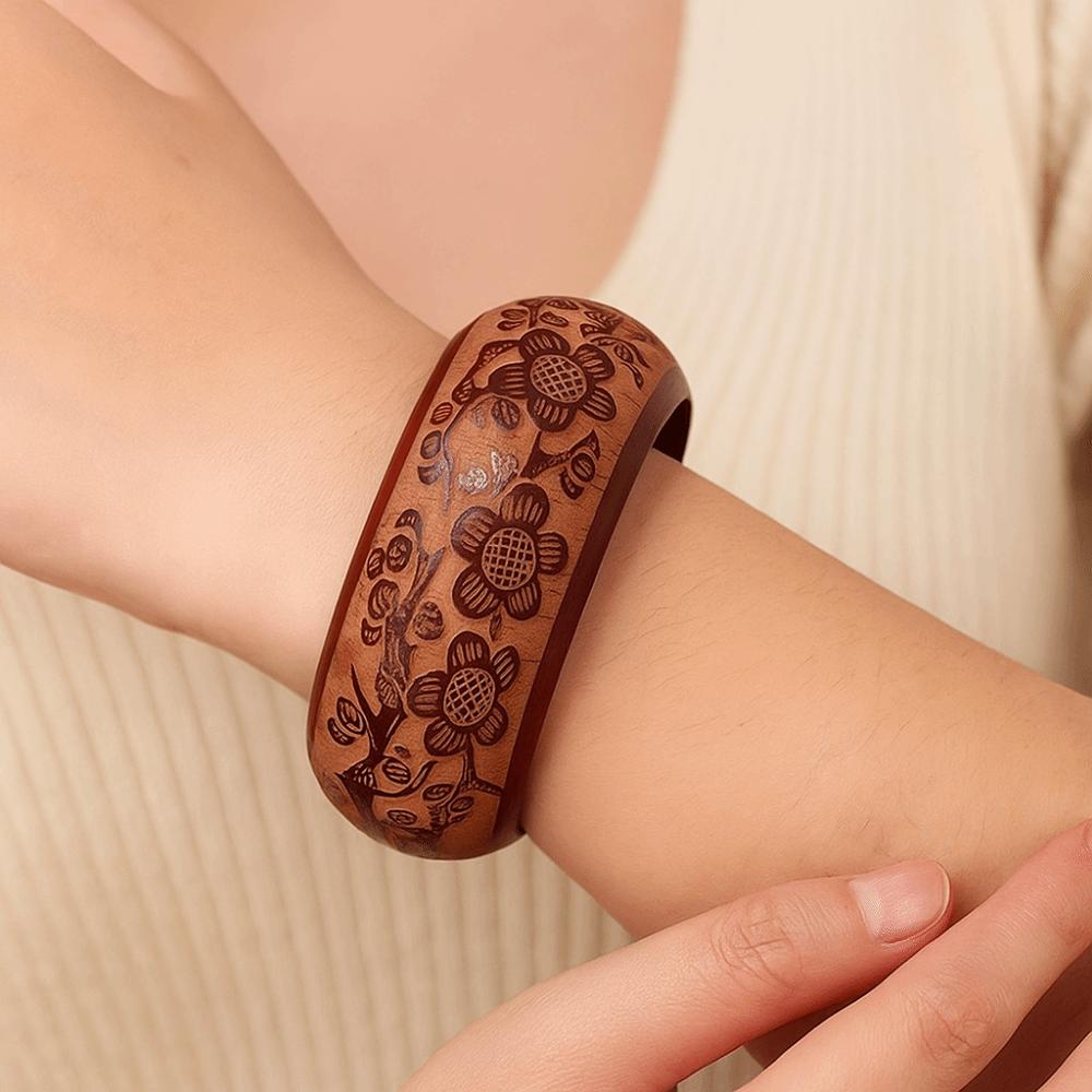 Красочный резной деревянный браслет-манжета в ретро этническом стиле, браслет в китайском стиле, украшение для рук