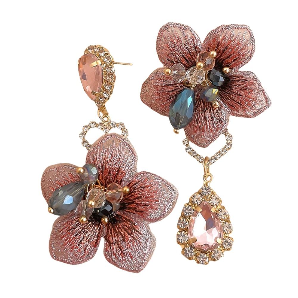 Elegant Flower Rhinestone Earrings Exquisite Vintage Earrings Sweet Flower Drop Earrings Women
