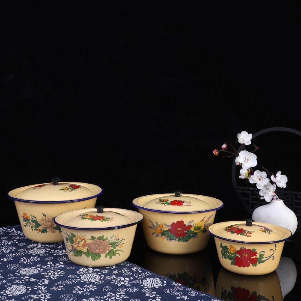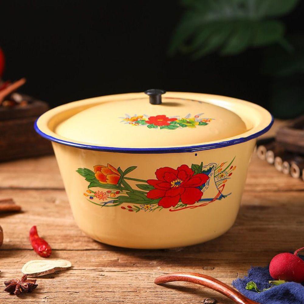 Винтажные эмалированные миски Желтый горшок для смальца Креативный контейнер для супа Ftuit