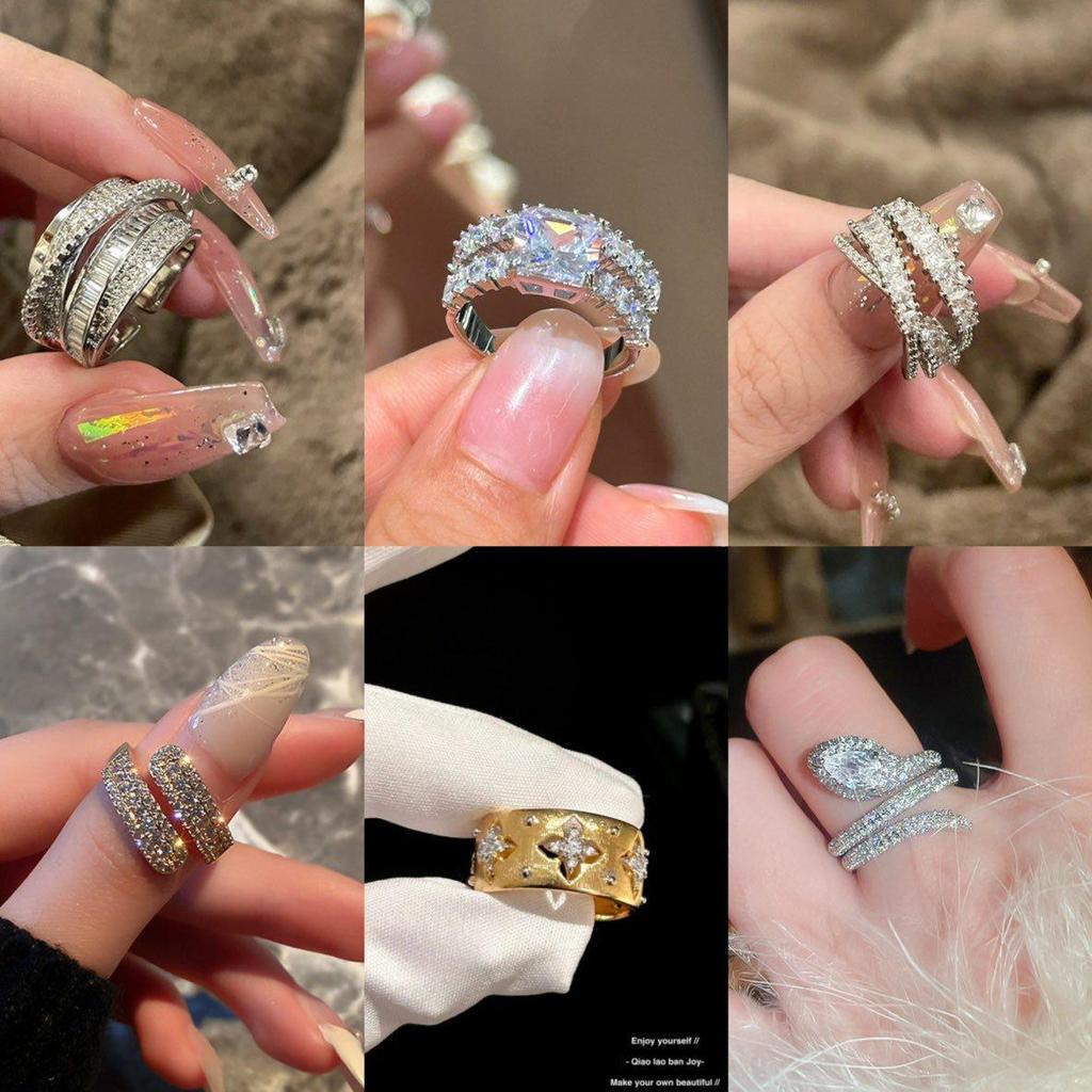 Платиновое циркониевое многослойное открытое кольцо: Изысканный, Легкая роскошь, Высокая мода, Универсальный дизайн ювелирных изделий