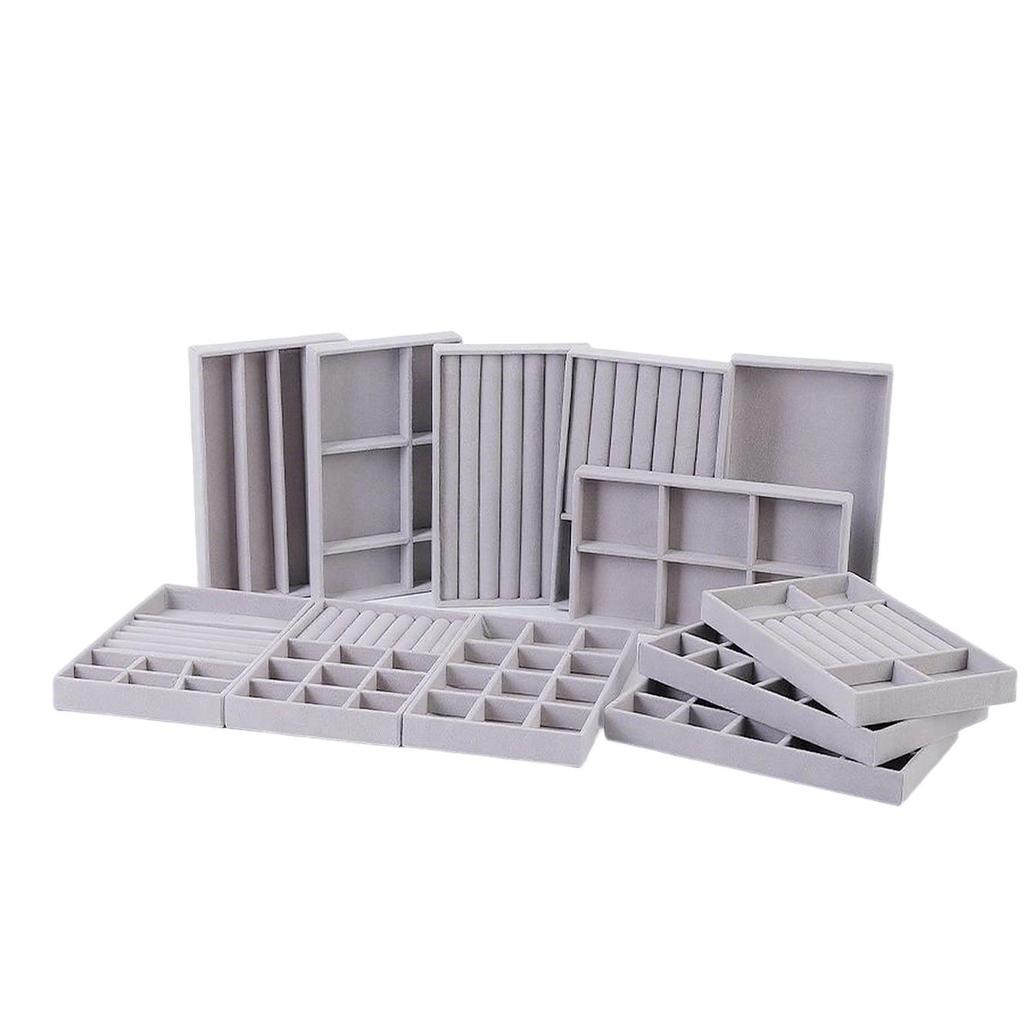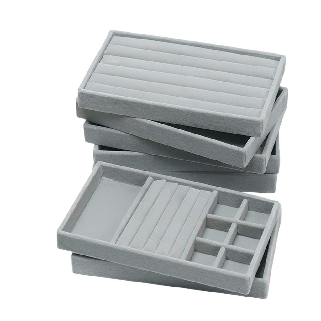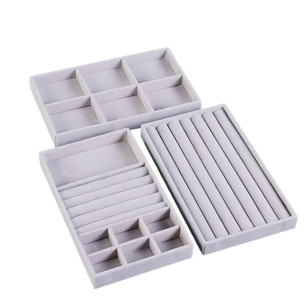 Бархатная шкатулка для украшений с выдвижным ящиком: Серый многофункциональный лоток для ожерелий и колец
