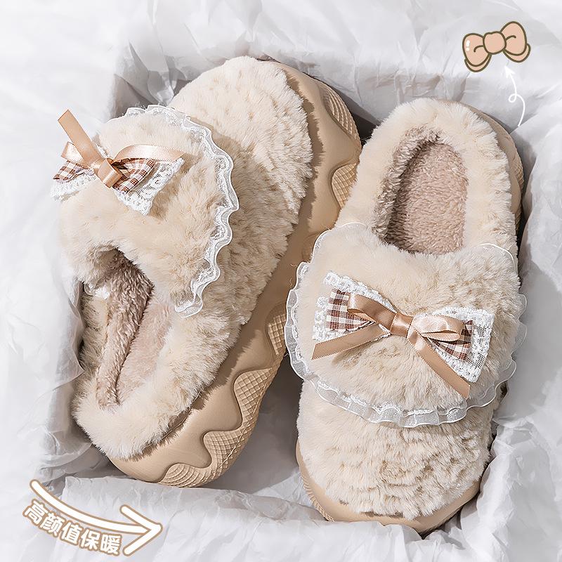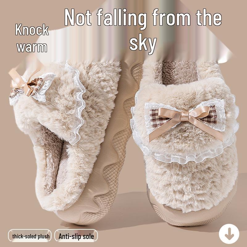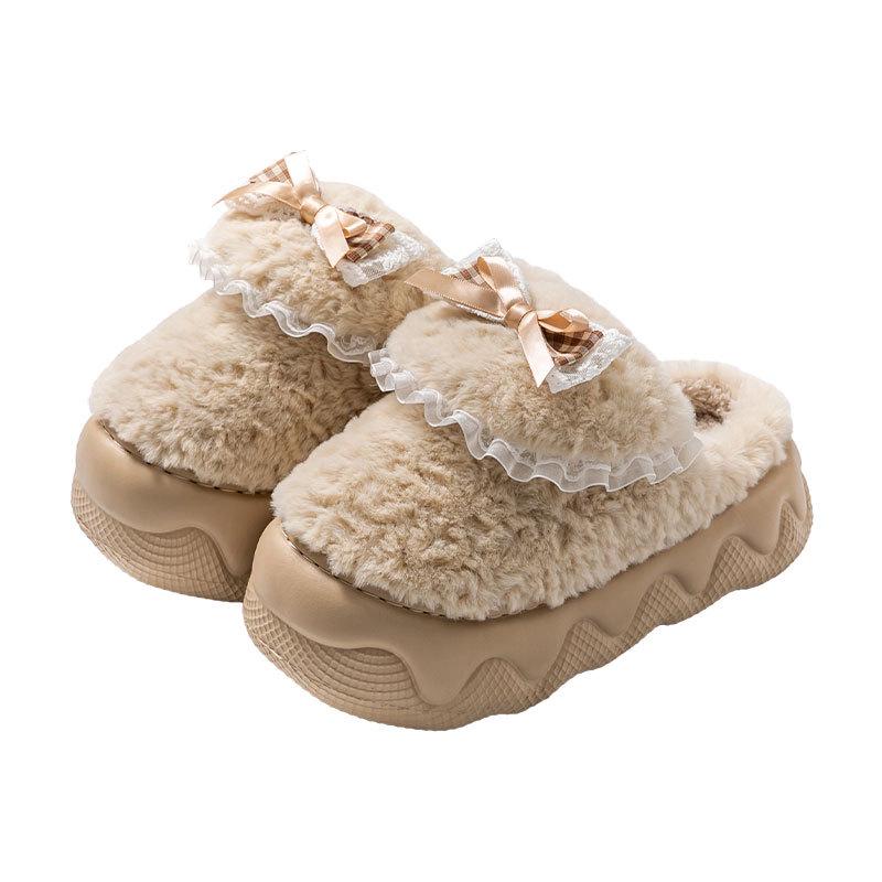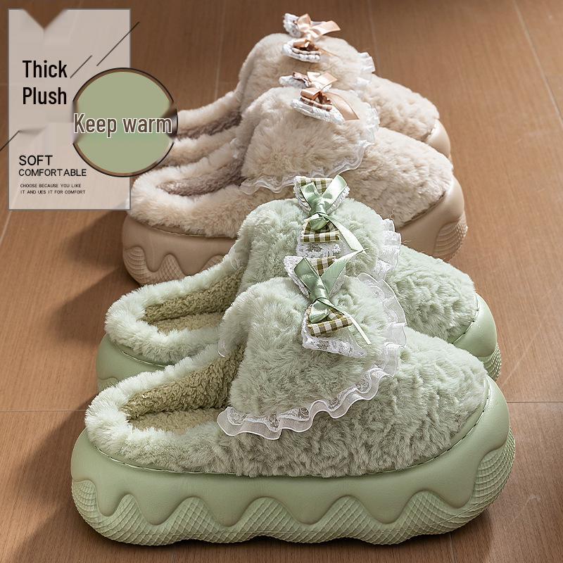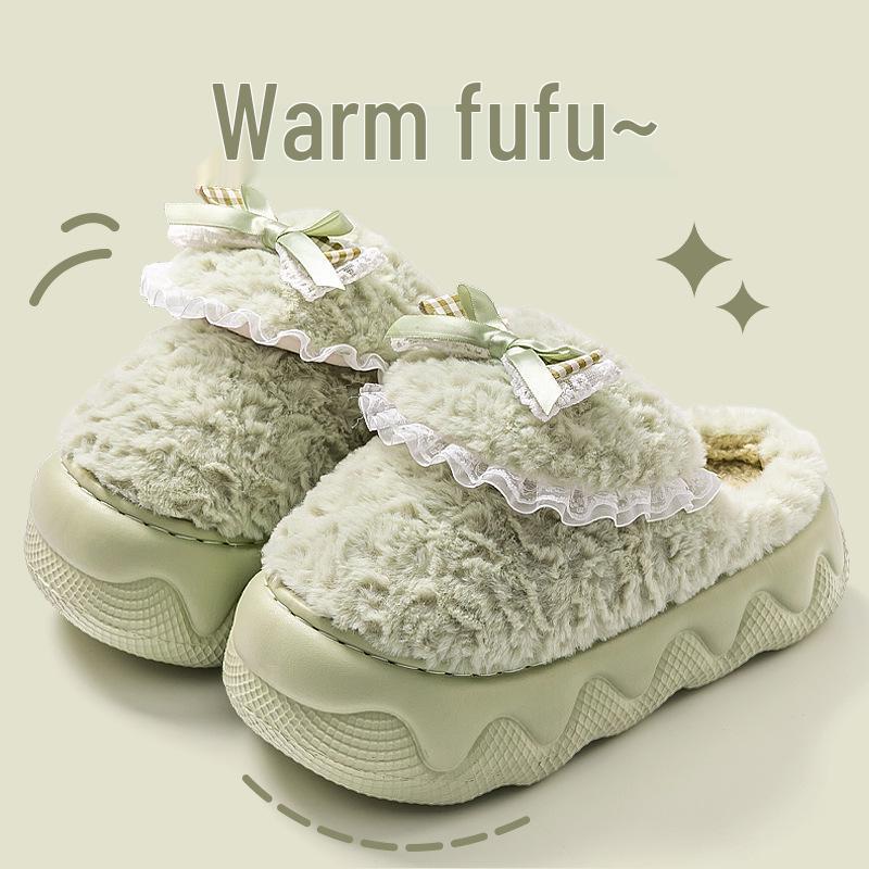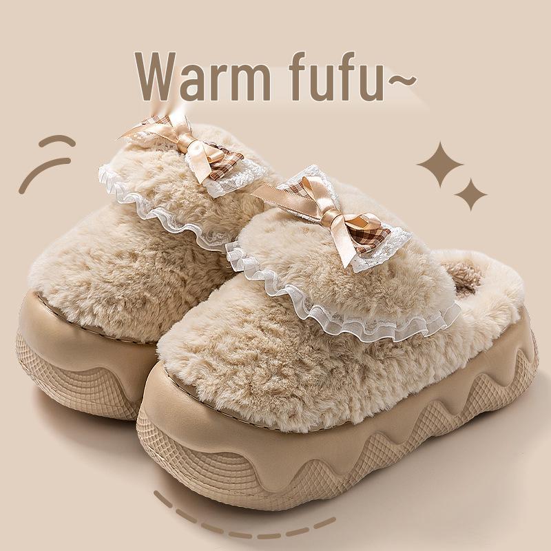 Женские плюшевые хлопковые тапочки 2025: Мягкая, на толстой подошве, увеличивающая рост и теплая домашняя обувь для осени и зимы