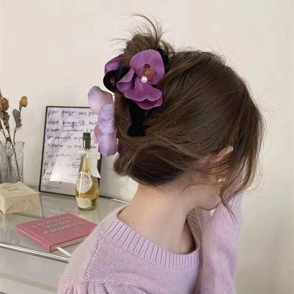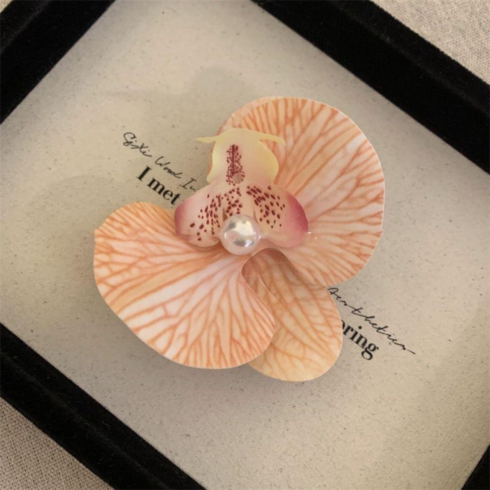 Заколка для волос с цветком из ткани, жемчужная заколка для волос для девочек, простая заколка для волос с цветком орхидеи, побережье