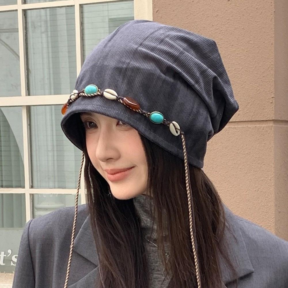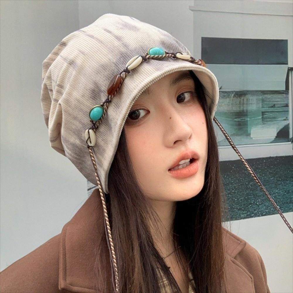 Ethnic Style Beanies Cap Korean Style Pullover Hats Fashion Y2k Baggy Cap Women