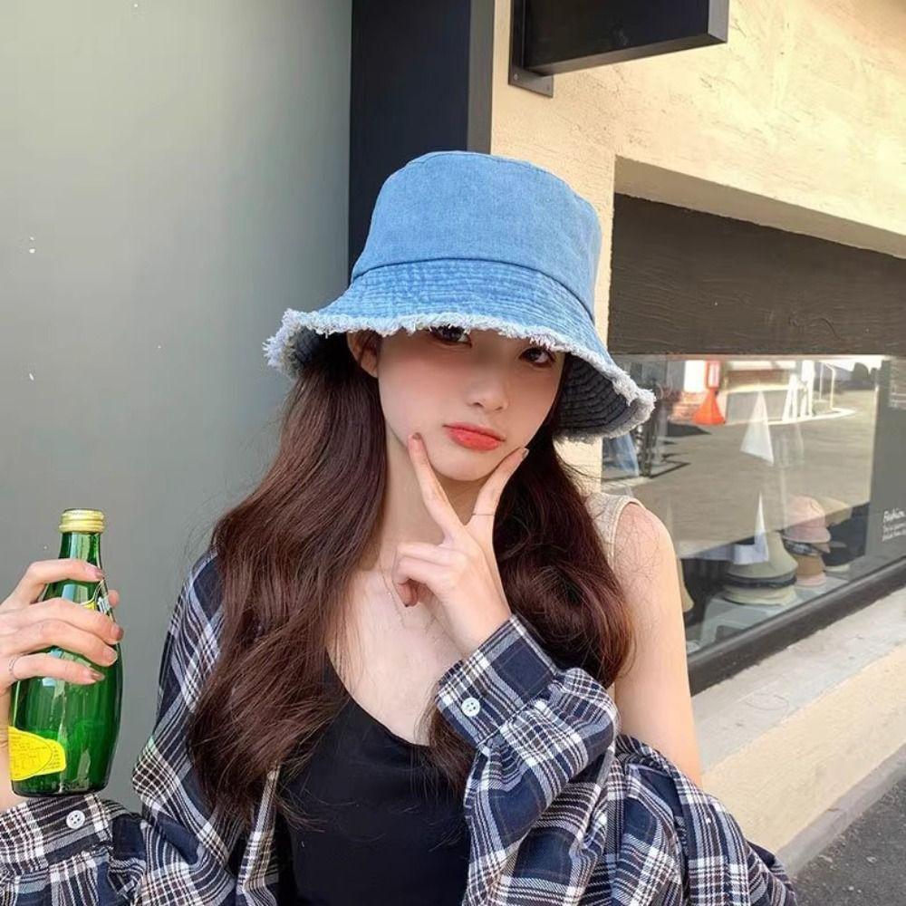 Tassel Denim Fisherman Hat Wide Brim Summer Sun Hat Punk Washed Denim Bucket Hat Climbing