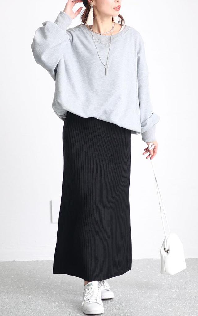Gold Japan Plus Size Narrow Rib Knit Skirt with Slit and Elastic Perfect for Fall and Size Black Women's Skirt, Long, Waist, Spring, 3L, (sada-6890)