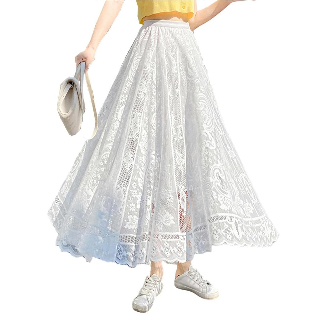 Кружевная расклешенная длинная однотонная макси юбка на осень [MSFQSNB] Женская юбка, Юбка, Юбка, А-силуэт, Элегантная, Цвет, Стройнящая, Подчеркивающая фигуру, Длина, Стильная, Простая,
