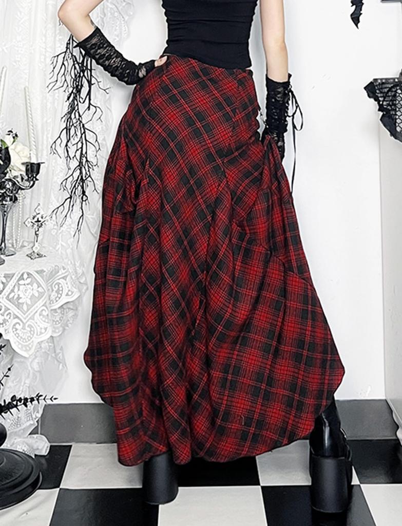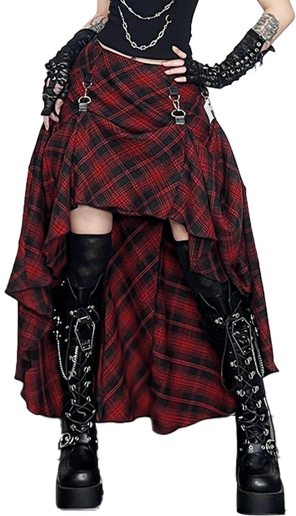 Расклешенная мини юбка французского девичьего стиля, асимметричная, красная, размер M [SEAUR], Длина, Удлиняющая ноги, Хлопок, Юбка, (Длинная),
