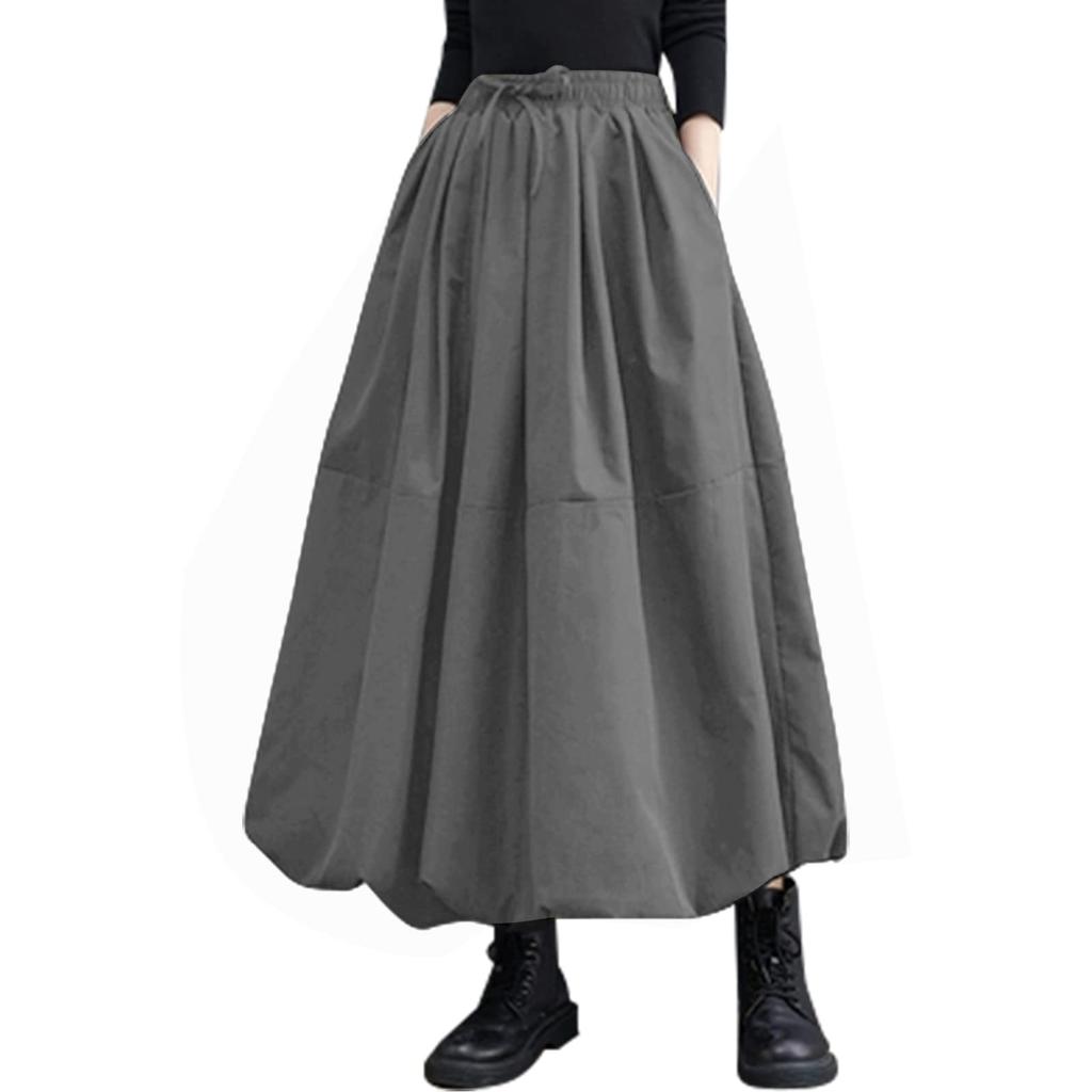 Guooryvner Длинная юбка макси клеш однотонная большого размера свободная женская юбка, Юбка, Длина, Юбка, Милая, Длинная, Цвет, Эластичная, Карманы, Размеры, На подкладке, Элегантная,