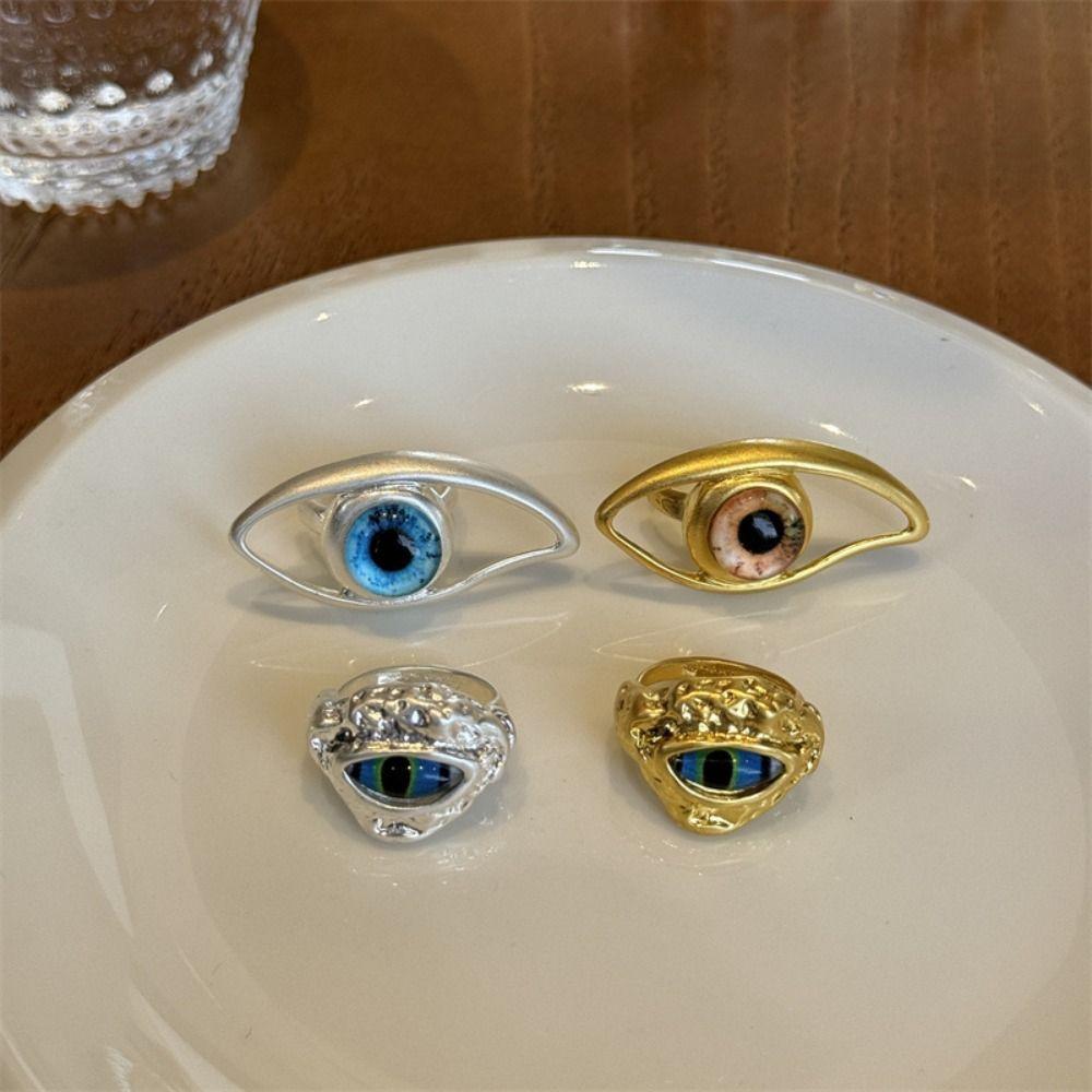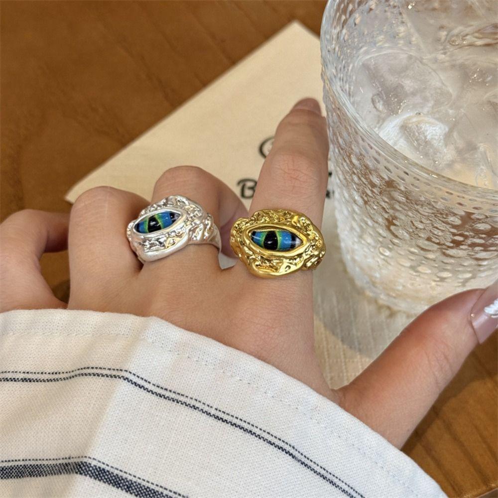 Корейский стиль Кольца с демоническим глазом Полые готические кольца Уникальная синяя глазная пряжка на палец Мужские