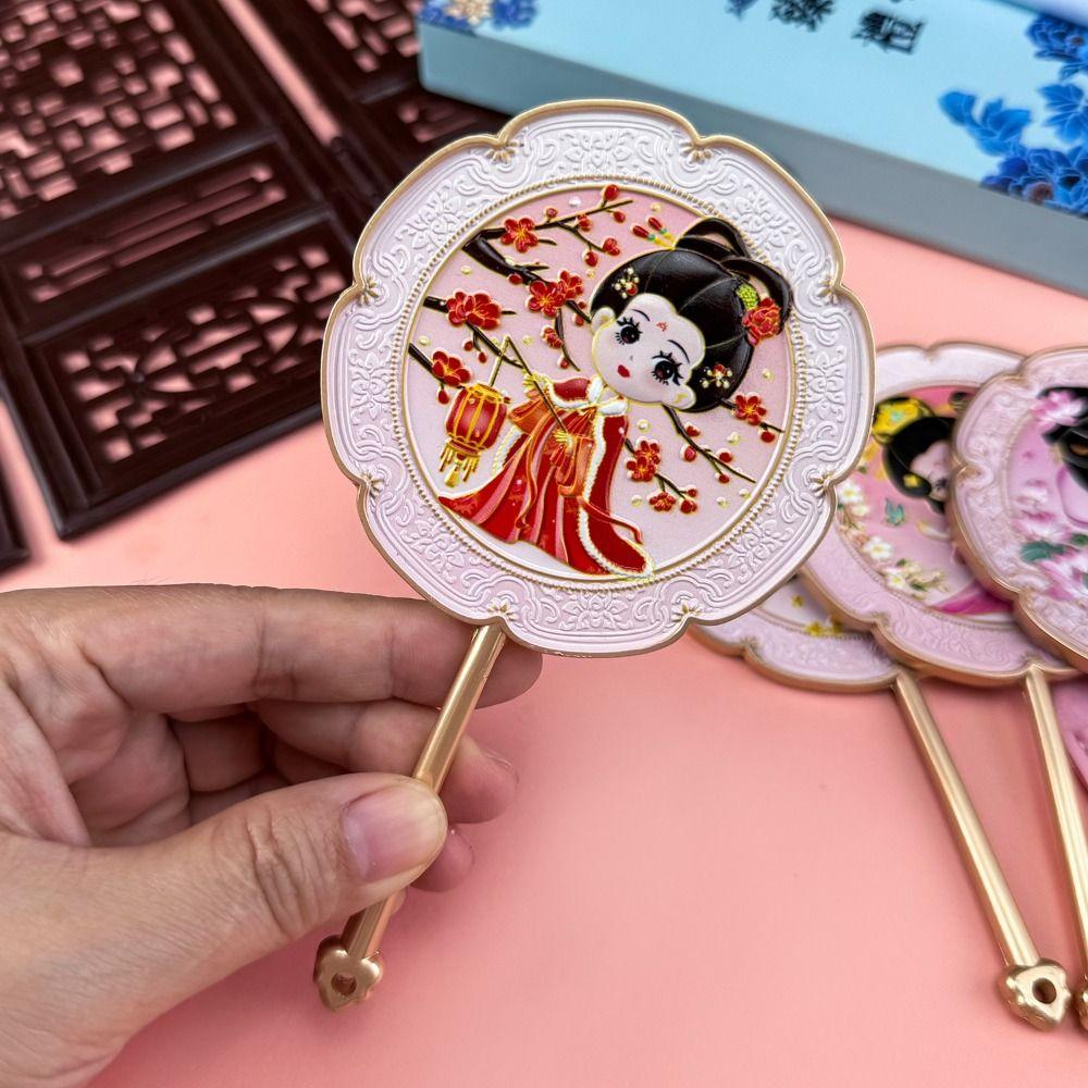 Round Handheld Makeup Mirror Cartoon Pocket Mirror Retro Metal Cosmetic Mirror For Home