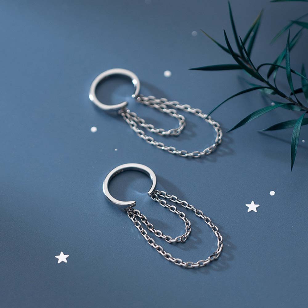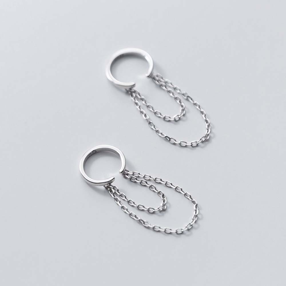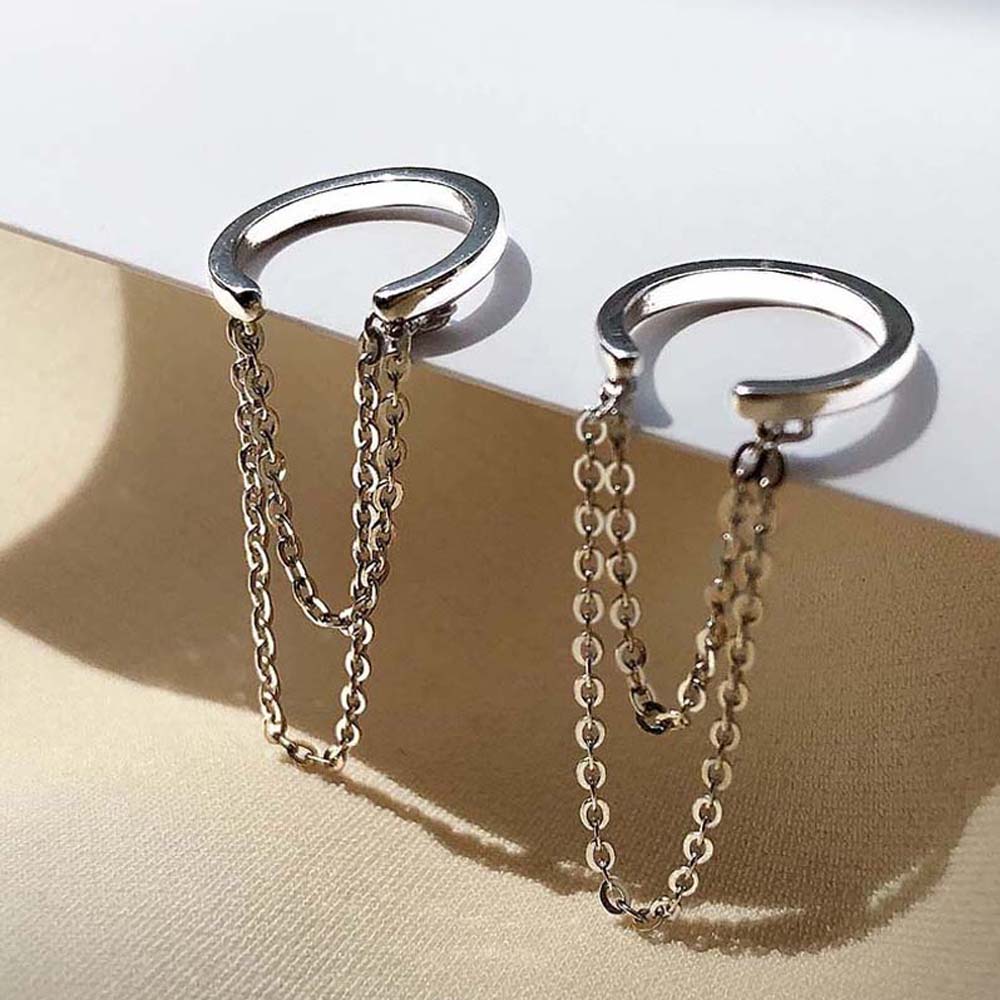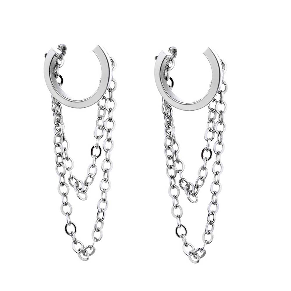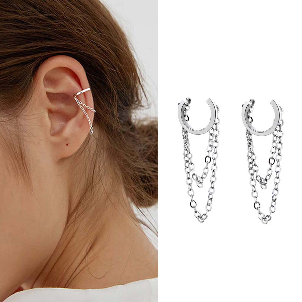 Simple Korean Silver Color Chain Tassel No Pierced Ear Clip Fashion Jewelry Ear Cuff Clip Earrings