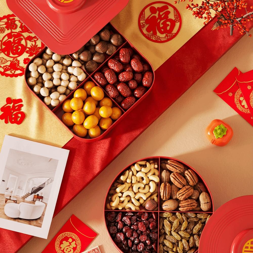 2 Layers Nut Serving Tray 8-Compartment Biscuit Fruit Plate Multi-functional Candy Box Party