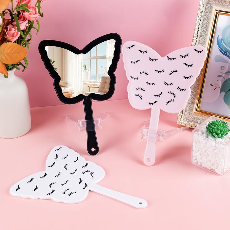 Eyelash Extension Handheld Makeup Mirror Butterfly Shaped Vanity Mirror With Plastic Handle Hand High Definition Mirror Beauty