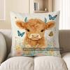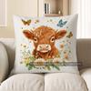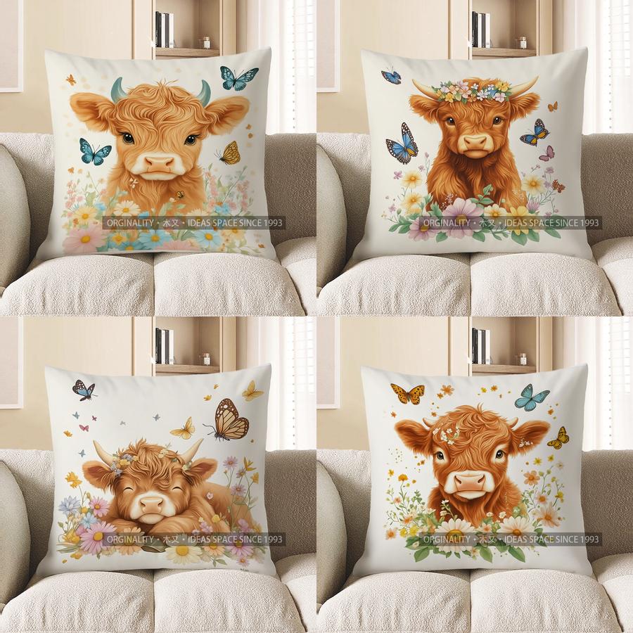 Декор для дома Милый шотландский бык с бабочками и цветами Наволочка с узором Подходит для дивана Спальни Автомобиля