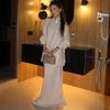 Мода Весна/Лето 2025 для Женщин Европы и Америки: Комплект: свободная рубашка с отложным воротником и длинным рукавом и юбка-миди с высокой талией