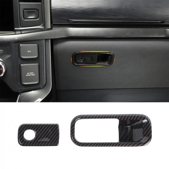 Carbon fiber Dash Storage Handle Glove Box Switch Cover Trim For Ford F150 +