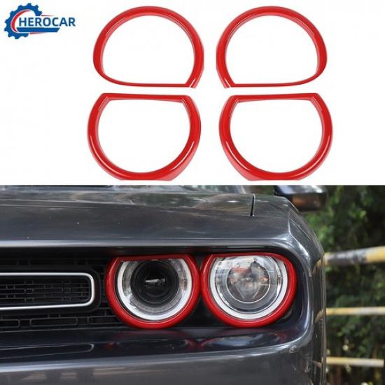 4pcs Car Headlight Frame Cover Bezel Trim for 2015-20 Dodge Challenger, ABS Red