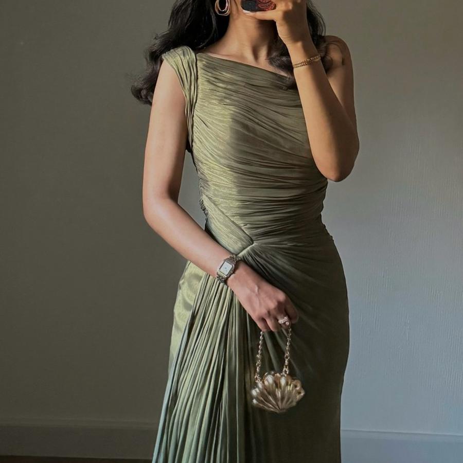 Осенние женские платья - Вечерние платья с оборками, плиссировкой и мерцанием — купить товар онлайн с бесплатной доставкой по всему миру!