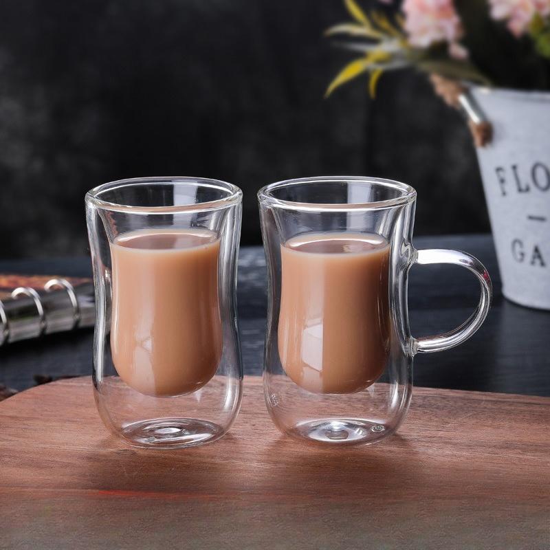 Insulated coffee cup high borosilicate double-layer glass water cup home creative teacup transparent cup small handle double-layer cup