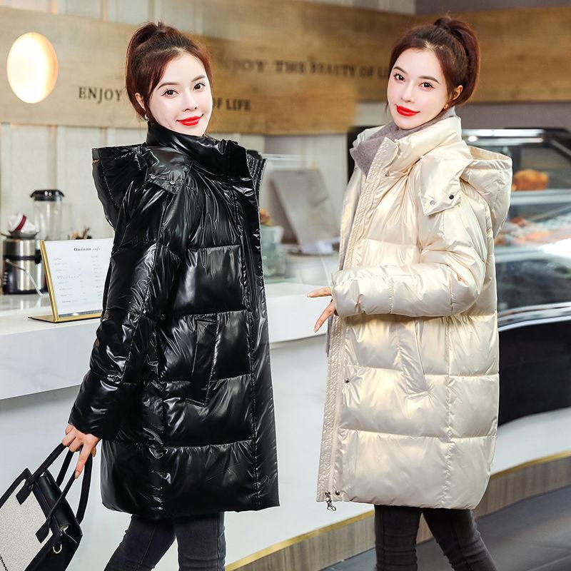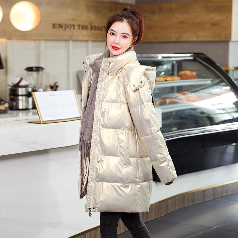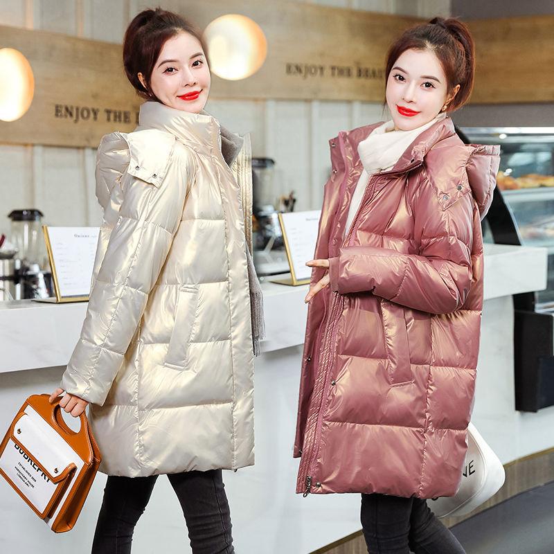 Зимняя яркая пуховая куртка средней длины с хлопковой подкладкой, утепленное пальто с капюшоном, свободная одежда