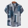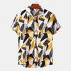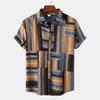 Винтажная Гавайская Рубашка Со Стыковочным Узором для Мужчин, Цветная, Квадратная, С 3D Печатью, С Коротким Рукавом, Повседневная, На Пуговицах, Свободная, Рубашки Алоха