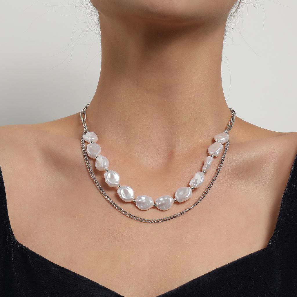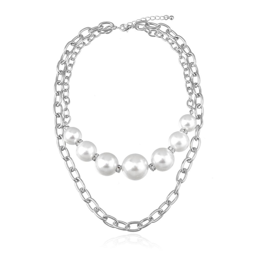 Европейская и американская мода, простое ожерелье-цепочка с жемчужной вставкой, двухслойное женское ожерелье, сочетающееся с ожерельем из сплава в стиле ветра