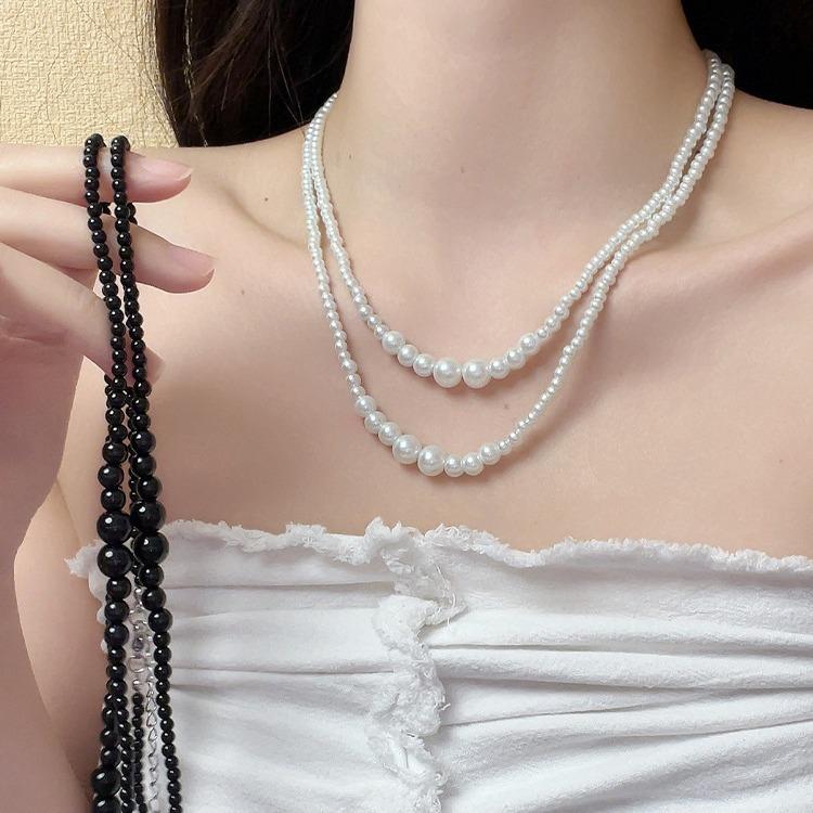 Неправильная многослойная укладка, ношение длинного жемчужного ожерелья, французский темперамент легкой роскоши, цепочка для свитера, простая высококлассная шейная цепочка, тренд